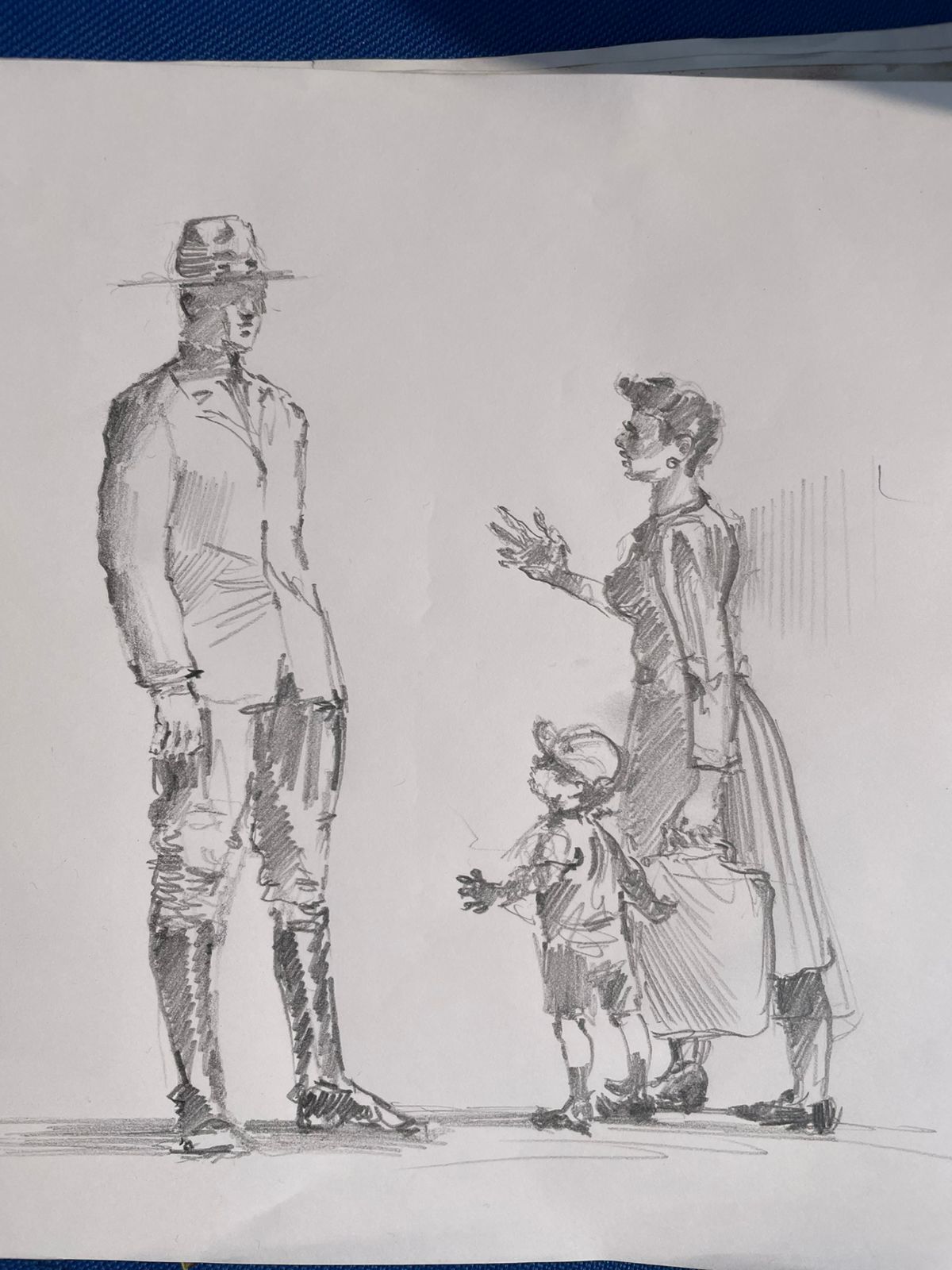 The historical photographs show the structure and the setting. The art allows us to restore the humanity. Not to rewrite history, but to remind us that the border was once experienced as a place of formality, order, and recognition, not fear. Everyone understood their role. Everyone understood the boundary. And everyone was treated with dignity.
